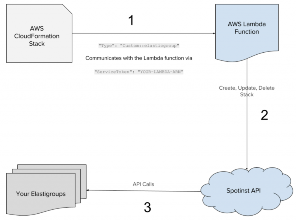 Spot uses Custom::Resource in your Cloud Formation templates which triggers the AWS Lambda function to communicate with the Spot API.